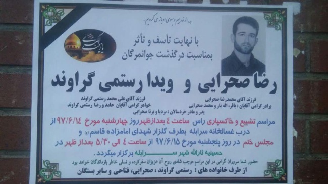 چهارشنبه ١٤ شهرويور ماه ١٣٩٧ شمسى ، يك زوج جوان به نامهاى ” رضا صحرايى ” و ” ويدا رستمى گراوند ” اهل سرابله ايلام از طريق خوردن قرص برنج به زندگى خود پايان دادند.