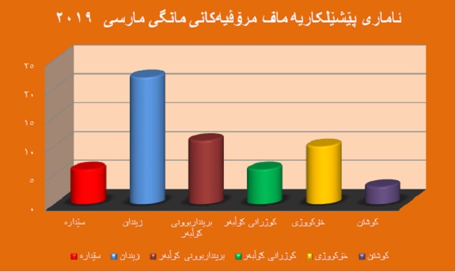 این گزارش وضعیت حقوق بشر در ماه مارس سال۲۰۱۹ به کوشش جمعیت حقوق بشر کوردستان با استناد به گزارشهای متعدد این سازمان حقوق بشری گردآوریشده است. شایانذکر است این گزارش به دلیل عدم اجازه حکومت ایران به سازمانها و گروههای حقوق بشری گزارش کاملی نیست و تنها بخشی از نقض سامانمند حقوق بشر در شرق کوردستان را به تصویر میکشد. حکومت جمهوری اسلامی ایران با بازداشت شهروندان کورد توسط نیروهای امنیتی و انتظامی با نقض حقوق مدنی و سیاسی، نقض آزادی عقیده و بیان، نقض حق حیات و امنیت شخصی، تبعیضهای حکومتی، هتک حرمت شهروندان و همچنین شکنجه زندانیان سیاسی و نادیده گرفتن حقوق بنیادین زندانیان سیاسی، ماه موردبررسی را به پایان رساند .