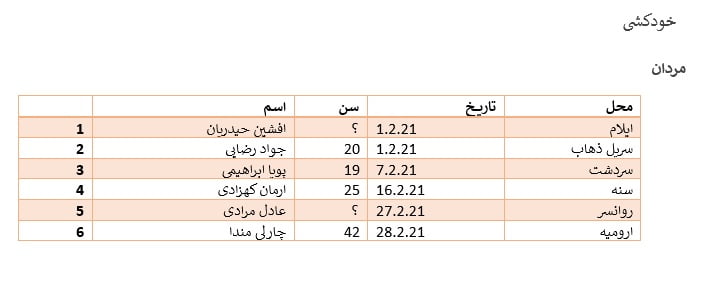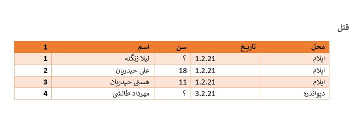 گزارش وضعیت حقوق بشر در ماه فوریە 2021 با کوشش جمعیت حقوق بشر کوردستان و با استناد به گزارشهای متعدد نشر شده از طرف جمعیت حقوق بشر کوردستان جمعبندی شده است.