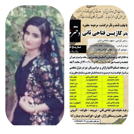 پنچشنبه ۹ دی۱۴۰۰ خورشیدی، یک دختر جوان با هویت “کاژین فتاحی” ۱۸ ساله فرزند شهاب اهل روستای “راژان” از توابع شهر اورمیه، با خودسوزی اقدام به خودکشی و به زندگی خود پایان داد.