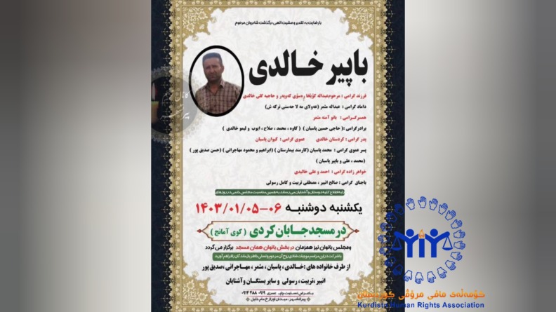 بنابر گزارشات دریافت شده، یک شهروند با هویت باپیر خالیدی، متاهل و داری فرزندی ٧ ساله، اهل شهرستان پیرانشار، به علت عدم توانایی در تأمین نیازهای مادی ، با اقدام به خودکشی به زندگی خود پایان داد.