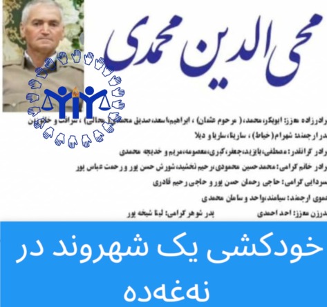 سەشنبه ۲٤ مهر ماه سال ۱٤۰۳ خورشیدی، یک شهروند با هویت محی الدین محمدی ٤۷ ساله اهل روستای دایماوێ از توابع شهرستان نەغەدە اقدام به خودکشی کرده و به زندگی خود پایان داد.