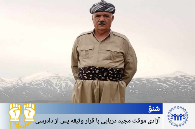 مجید (نجمالدین) دریایی، فعال و زندانی سیاسی سابق اهل شنۆ(اشنویە)، چهارشنبە ۲۰ فروردین ۱٤۰٤، پس از حضور در جلسە دادرسی و ارائە دفاعیات خود در برابر اتهام ” تبلیغ علیە نظام ” در شعبە اول دادسرای عمومی و انقلاب رژیم ایران در این شهر، بە صورت موقت و با قرار وثیقە آزاد شد.