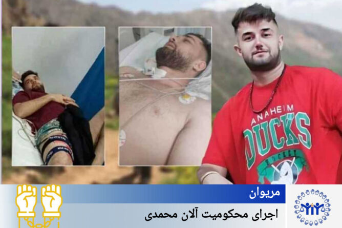 دوشنبە ۲۲ اردیبهشت ۱۴۰۴، آلان محمدی شهروند جوان اهل مریوان، جهت اجرای حکم صادر شده از سوی مراجع قضایی، به زندان رژیم ایران در این شهر منتقل شد. وی پیشتر حین کۆڵبەری هدف گلولە نیروهای مرزبانی قرار گرفتە و از ناحیە کمر بە شدت مجروح شدە بود.