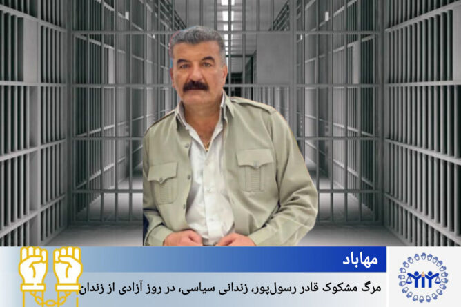 قادر رسولپور، زندانی سیاسی، روز جمعه ۲۷ تیر ۱۴۰۴ (۱۸ ژوئیه ۲۰۲۵) و در حالی که تنها ساعاتی با پایان دوره محکومیت خود فاصله داشت، بهطرز مشکوکی در زندان مرکزی مهاباد جان باخت. او ۵۳ ساله و اهل مهاباد بود و مجموعاً نزدیک به ۹ سال از عمر خود را در پی فعالیتهای سیاسی در زندانهای رژیم ایران سپری کرده بود.