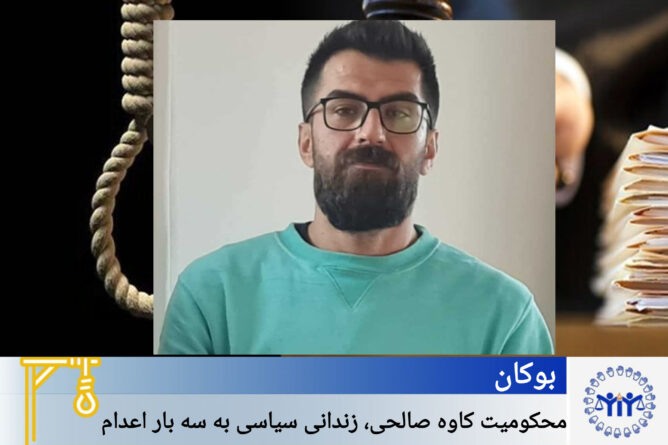 بر اساس گزارشها، شعبه اول دادگاه انقلاب رژیم در اورمیه در تیرماه ۱۴۰۳، کاوه صالحی، زندانی سیاسی اهل بوکان را به اتهام «بغی و محاربه» به سه مرتبه اعدام محکوم کرد؛ حکمی که وکلای او رسماً دریافت کردهاند.