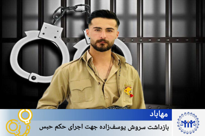 بر اساس گزارش‌ها، شنبه ۳ آبان‌ماه ۱۴۰۴ خورشیدی، سروش یوسف‌زاده، شهروند اهل مهاباد که پیش‌تر به شش ماه حبس تعزیری محکوم شده بود، پس از احضار به شعبه اجرای احکام بازداشت و جهت اجرای حکم روانه زندان شد.