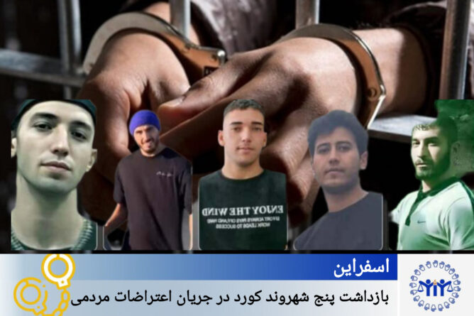 بر اساس گزارش ها، پنج شهروند کورد اهل شهرستان اسفراین در استان خراسان شمالی، شامل علی قویدل، پیمان میرزایی، عیسی شکوری، عباس بیدی و آرین حیدری، در جریان اعتراضات مردمی این شهر توسط نیروهای حکومتی بازداشت شدند. این افراد به مکان‌های نامعلومی منتقل شده‌اند و تاکنون هیچ اطلاعات رسمی درباره وضعیت یا دلایل بازداشت آنها منتشر نشده است.