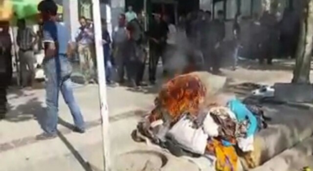 در هـمين ارتباط، يكى از اين دست فروشان در اعتراض به برخورد غير غیرقانونی و غیرانسانی مأموران وسايل خود را به اتش كشاندە است.