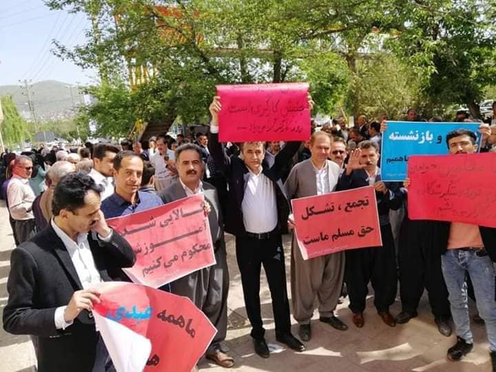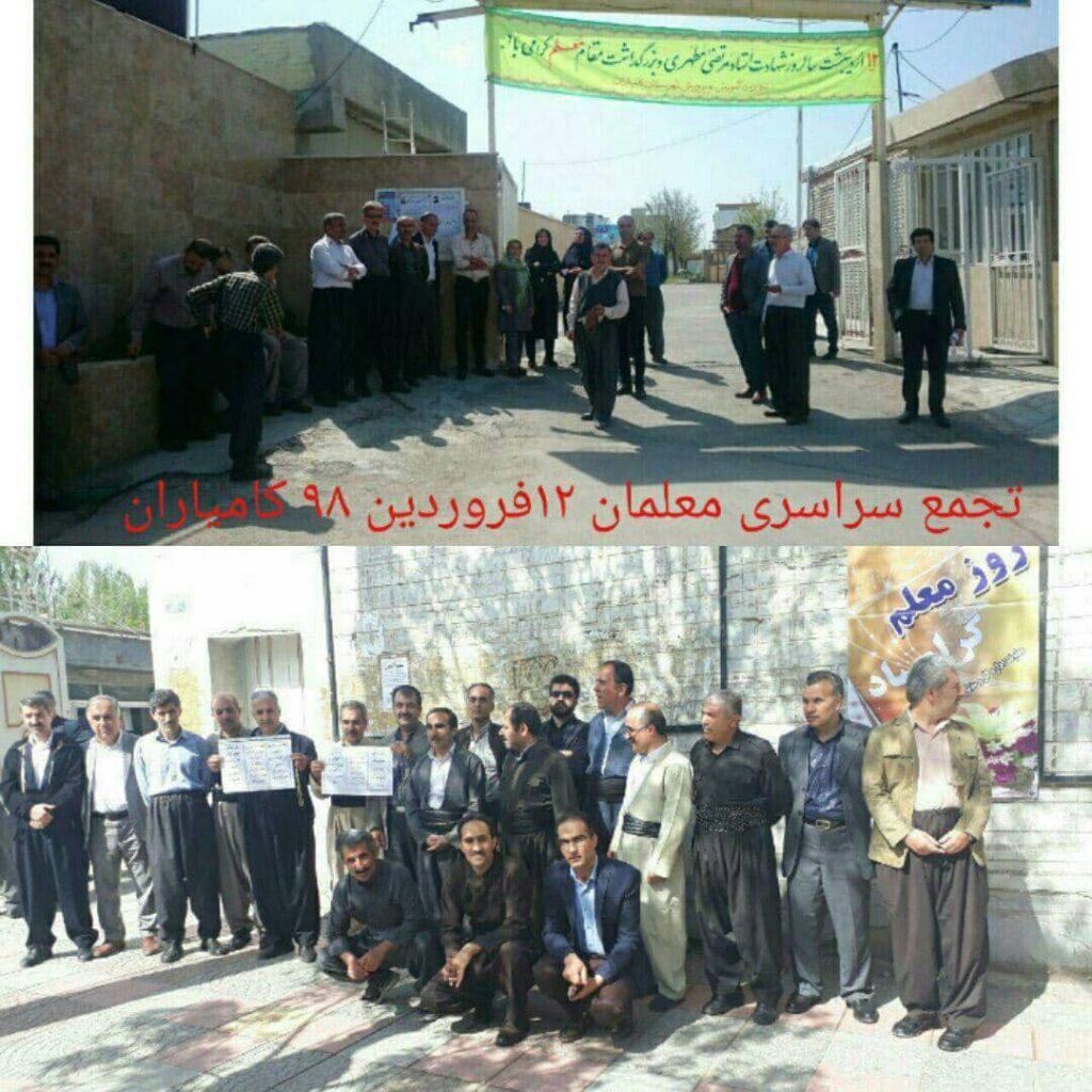 پێنج شەممە ۱۲ی گوڵانی ۲۷۱۹ی کوردی، مامۆستایان بۆ رێز گرتن لە رۆژی مامۆستا لەبەردەم ئیدارەی پەروەردەی کۆماری ئیسلامی ئێران لەزۆربەی شارەکانی رۆژهەڵاتی کوردستان کۆبونەوەیان پێک هێنا.