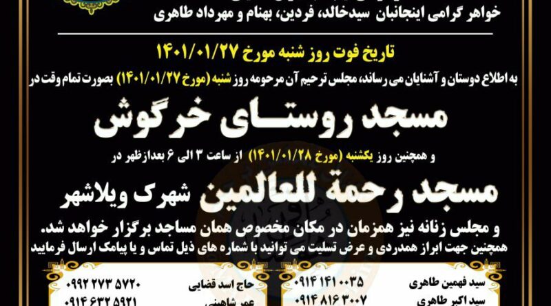 هەینی ٢٦ی خاکەلێوەی ٢٧٢٢ی کوردی، هاوڵاتییەکی ژن بە ناونیشانی پەروانە تاهێری کچی خەلیل و دایکی سێ منداڵ، خەڵکی گوندی خڕە گۆش سەر بە شاری ورمێ، پەتی بۆ خۆی هەڵخست و کۆتایی بە ژیانی هێنا.