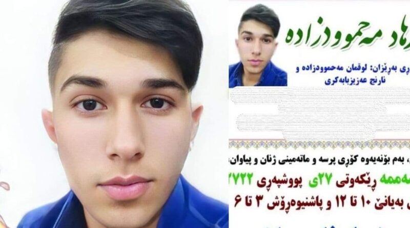 یەکشەممە ٢٦ی پووشپەڕی ٢٧٢٢ی کوردی، کوڕێکی مێرمنداڵ بەناونیشانی فەرهاد مەحموودزادە، تەمەن ١٧ساڵ کوڕی نارنج عەزیزبابەکری و لوقمان مەحموودزادە خەڵکی شاری مەهاباد، گیانی لە دەستدا.