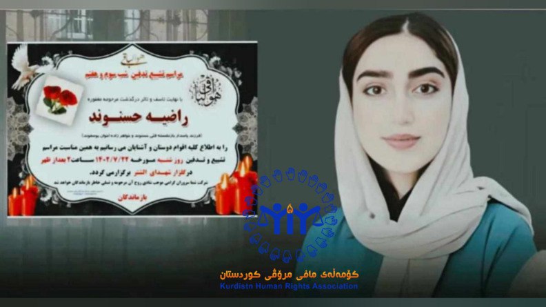 دووشەممە ٢٥ی رەزبەری ساڵی ٢٧٢٣ی کوردی، بەپێی ئەو ڕاپۆرتانەی به دەست کۆمەڵەی مافی مرۆڤی کوردستان کەوتوونە، هاووڵاتییەک بە ناوی “رازیە حەسەنوەند”، تەمەن ٢٠ ساڵ، کچی “قولی حەسەنوەند” خەڵکی شاری ئەلشەتەرە، کە به مناڵی بەناچاری هاوسەرگیری پێ کراوە و داویانە بە ئامۆزاکەی و لە ٢٠ی رەزبەری ئەمساڵدا بە تەقەی ڕاستەوخۆی براکەیبراکەی لە ئەلشەتەر بریندار کرا بوو، دورۆژ دواترچووە کۆما و بەهۆی کاریگەری برینەکانیەوە گیانی لەدەستدا.