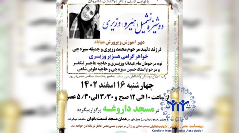 بە پێی هەواڵەکان، ڕۆژی سێشەممە ١٥ی رەشەمەی ٢٧٢٣ی کوردی، دوو هاووڵاتی بە ناوەکانی هێرۆ وەزیری تەمەن ٢٥ ساڵ خەڵکی شاری مەهاباد و ڕزوان ئیمانیان تەمەن ٢٢ ساڵ خەڵکی شاری خوڕەماوا، کۆتاییان بە ژیانی خۆیان هێنا.