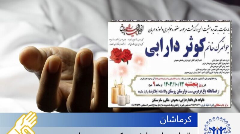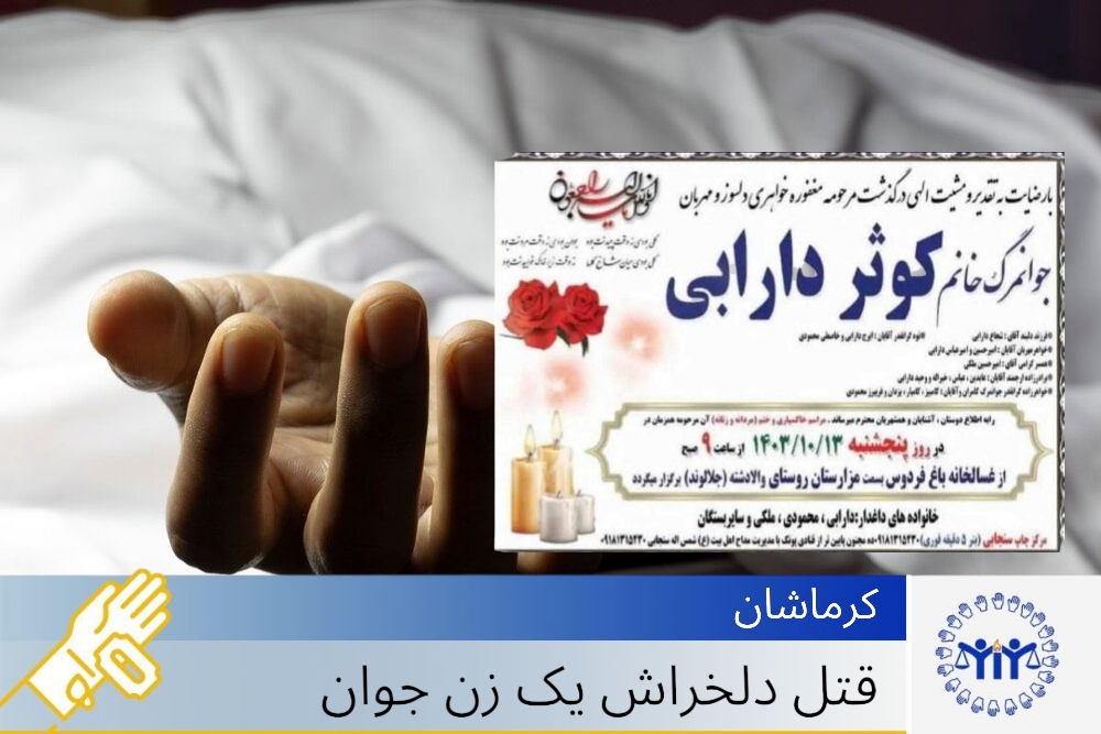 بەپێی هەواڵی گەیشتوو بە ناوەندی هەواڵی کۆمەڵەی مافی مرۆڤی کوردستان(KMMK)، کەوسەر دارابی، ژنێکی تەمەن ١٨ ساڵی خەڵکی کرماشان، ڕۆژی ١٢ی ڕێبەندانی ١٤٠٣ بە تەقەی هاوسەرەکەی گیانی لەدەست دا.