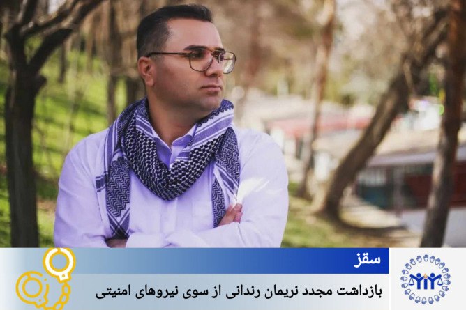 نەریمان ڕێندانی چالاکی مەدەنی خەڵکی سەقز و لە هونەرمەندانی بواری مووزیک، چوارشەممە ٢٠ی خاکەلێوەی٢٧٢٥ی کوردی، بەبێ نواندنی حوکمی قەزایی لەلایەن هێزە ئەمنییەکانەوە دەسبەسەر و بۆ شوێنێکی نادیار ڕاگوازراوە.