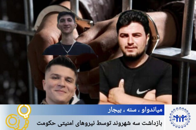 ڕۆژی دووشەممە ١٣ی ڕێبەندانی ٢٧٢٥ی کوردی، سێ هاوڵاتی کورد بە ناوەکانی سەردار سەیدڕەحیمی، خەڵکی گوندی “گامێش گۆلی” سەر بە شاری میاندواو؛ کارۆ مەنبەری، گەنجێکی تەمەن ١٩ ساڵانی دانیشتووی گوندی “حەسەناوا”ی سنە و ئومێد ئەڵڵامورادی، تەمەن ٢١ ساڵ و خەڵکی بیجاڕ، بەبێ نواندنی هیچ جۆرە بەڵگەیەکی یاسایی، لەلایەن هێزە ئەمنییەکانی ڕژیمی ئێرانەوە دەسبەسەر کران.